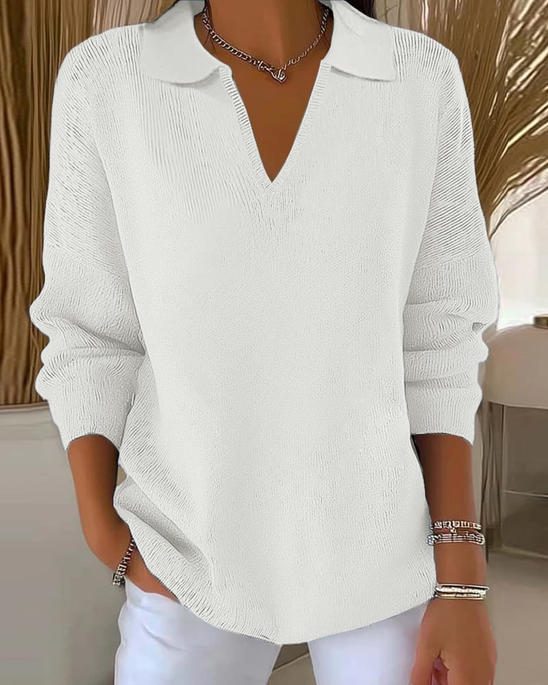 Casual V-Neck Solid Color Pullover