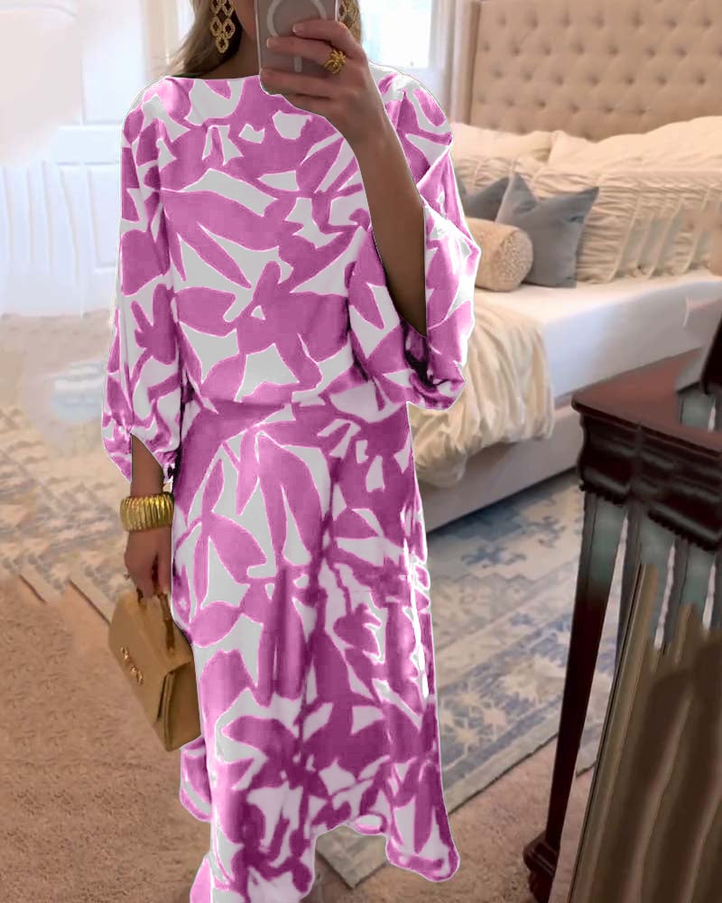 Temperament Printed Lantern Sleeves Casual Dress Set